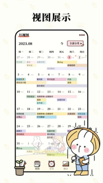 月视图:该应用程序提供了月视图功能,用户可以轻松查看整个月的日程安排。