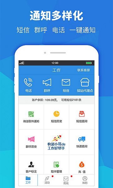 价格方面也很有优势,群发短信和电话群呼都是行业低价,适合大量使用的快递员。而且操作起来也挺简单的,扫描手机号就能自动录入,还能自动生成货号,方便管理包裹。