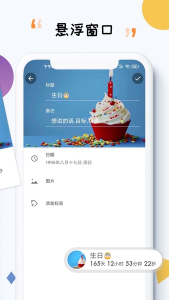实时展示您记录的重要日子倒计时,在app上轻松查看;