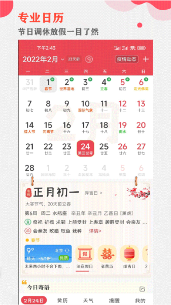 软件还提供国际节日、传统节曰、二十四节气等相关信息;