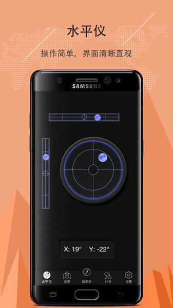 豆豆指南针App的界面简洁明了,启动后即可显示当前方位,包括北向、南向、东向和西向,以及具体的度数。应用还提供了水平仪功能,帮助用户检查设备是否处于水平状态,这对于摄影、建筑等行业非常有用。
