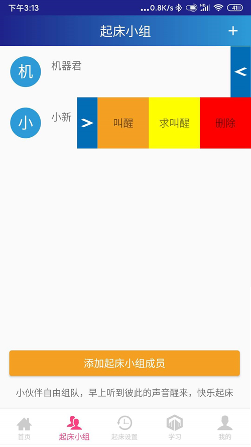 可以用它来组队起床,找几个小伙伴来组队,大家每天早上彼此叫醒。