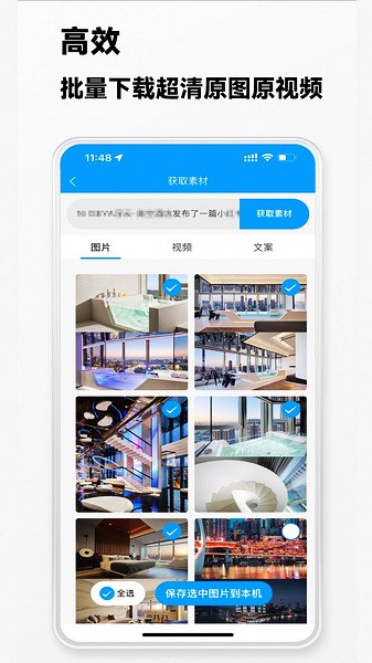 抖音、快手、小红书、ins用户一键保存视频、图文素材