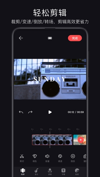 轻剪是一款非常实用的免费视频剪辑软件,其操作便捷易上手,界面也是相当清爽直观,各种功能一目了然,并拥有超多内置创意模板可供用户进行挑选,且类型相当丰富,囊括了旅行、生活、艺术等,在确定想要制作的风格后,一键即刻导入视频素材,并拥有裁剪、变速、倒放和转场等多种剪辑功能,还能对图片进行调色,饱和度、对比度、色温、色差等都能调节,满足不同用户的使用需求!