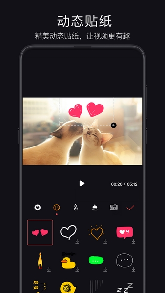 3、根据动态贴纸就能迅速设置精美的动态贴图在视频上;