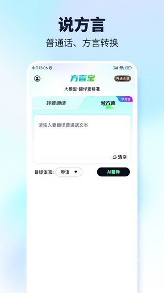 对方言进行翻译,帮助用户将方言转换成普通话,让你可以掌握方言的意思;