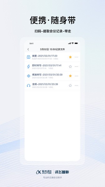 【会议记录管理】讯飞AI投影仪、讯飞AI麦克风投屏器录制会议后,您可以通过讯飞智影手机app提取、查看、编辑、分享和管理会议音频、逐字精准转写文稿等会议记录,轻松秒杀速记员~
