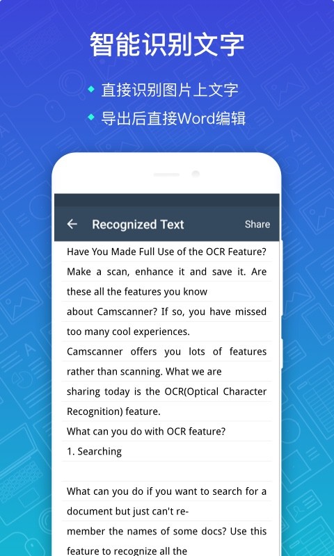 智能OCR文字识别,手机拍纸质文件,搜上面的字就能找到它!