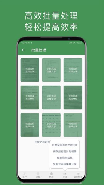 你可以使用白描的批量处理功能,批量进行OCR文字识别,将全部结果合成一段文本。也可以批量生成扫描件,生成PDF。