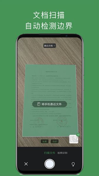 扫描文档时,只需将软件的摄像头对准要扫描的文件,等待自动拍照生成扫描件即可。