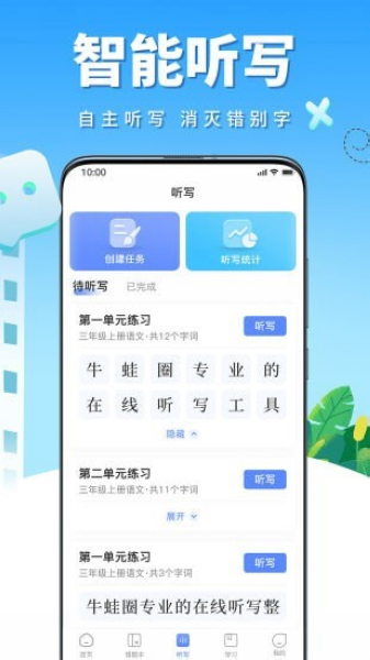 4、智能听写功能,可以帮助孩子养成自主听写的好习惯,从而消灭错别字。