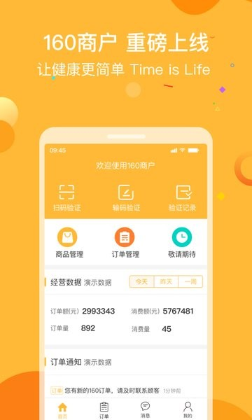 1、点击160商户app,直接注册登录后立即查看使用各种功能