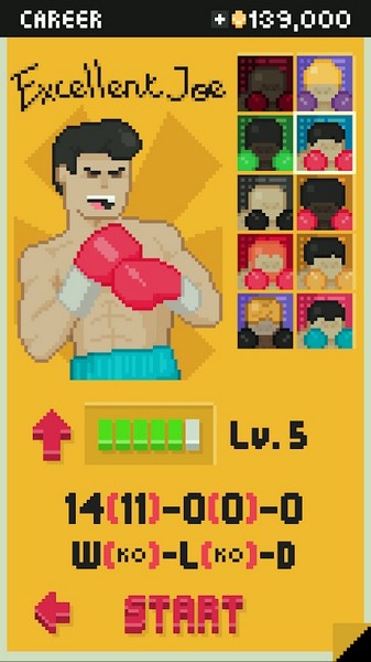 像素拳击手是一款非常好玩的以像素为风格的拳击模拟题材手游,在该游戏中玩家将会化身为一名拳击手,然后要参加各种拳击比赛,需要通过自己的技巧来击败对手获得最后的拳击冠军。同时在比赛的过程中玩家还需要掌握拳击动作和技巧,使用拳击手中的拳头和技能来攻击对手。此外游戏还为大家提供了多种不同的玩法模式,让大家可以更好的体验游戏带来的极致乐趣。