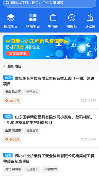 1、海量工程项目在这里发布,可以通过智能筛选或者关键词一键快速查找所需项目信息。