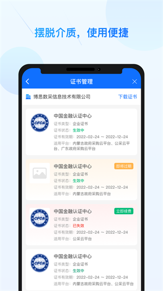 -- 汇集了超多的项目信息,方便用户们及时查看,对证书的管理也变得更为便捷