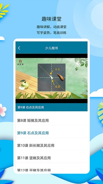 4、规范字教学:与语文教材同步,每一个字都有三笔字讲解示范,20000个教学微视频;130000多张古今书法家书法高清欣赏。