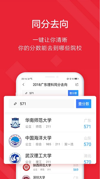 4、【同分去向】一键让你清晰你的分数能去到哪些院校。