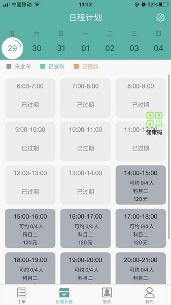 教练通过人性化参数配置,系统自动生成教学排课安排。学员通过线上预约,教练轻松管理自己的教学计划,学员完成一节课程后,教练可选择多种收款方式进行收费。