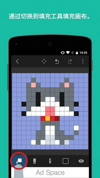 填充画布:使用桶工具轻触画布并填充您选择的颜色获取颜色:吸管工具点击画布以获得颜色