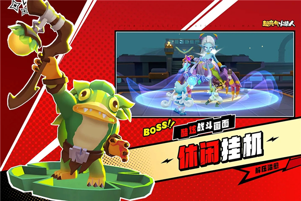 超元气火柴人九游版是一款画面精美的放置类RPG游戏。在这款游戏中玩家可以从三种不同的职业中任选作为自己的职业,创建角色踏上与整个世界boss对抗的道路。玩家可以招募伙伴和宠物等来补充自己队伍的战斗力,选择主力伙伴并配置助战伙伴,将伙伴的加成集中应用在主力和玩家身上,让战力爆表,在应对boss时能更加持久。