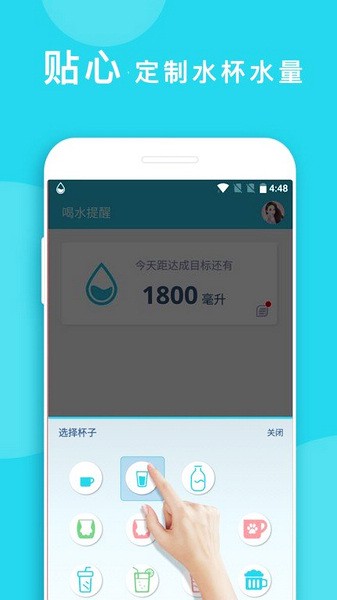 软件提供圆形、方形等类型的杯子供用户选择,使得用户就可提升喝水兴趣