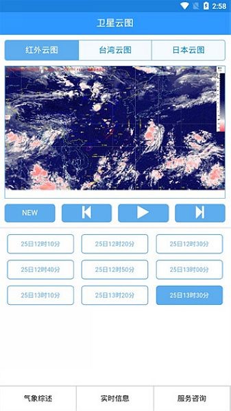 4、接入天气预报及卫星云图,雷达图,5天预测,趋势图等等信息。