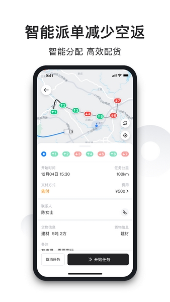 智能精准路线导航,运货更舒心;返程车、回头车都能接单,赚钱一点不耽误