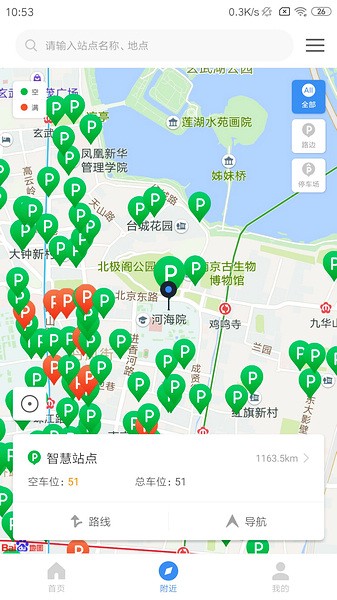 用户一键查找泊位,即可搜索附近空余泊位。方便用户出行
