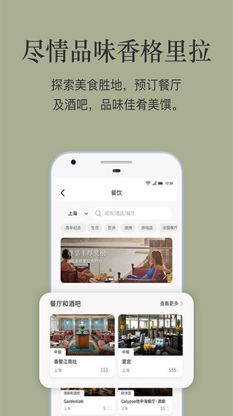 香格里拉酒店集团app是一款香格里拉酒店专门为客户提供服务的住宿软件,软件拥有住宿,美食,购物等等丰富功能,用户可以直接使用该软件预订房间、办理房间入住以及退房等相关操作,更加方便快捷。除此之外,软件内还有线上餐饮优惠抢购活动,让你可以尝遍当地的各种特色美食,商城服务还可以让大家查找以及购买最近的特色美食和丰富的伴手礼,不管你要去哪个城市,都可以找到相应的酒店和美食。