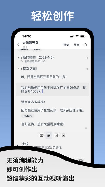 ·无需任何编程能力,轻松创作出精彩的互动视听作品。