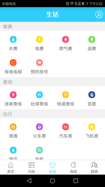 实时定位,汇集地市天气、美食、交通、生活资讯。