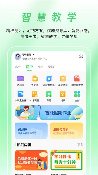 众享教育是一个专为中小学设计的在线学习平台,提供全面的教学资源和辅导工具,帮助学生提升学习成绩。它不仅涵盖各个学科的课程内容,还支持在线视频教学、家校互动沟通以及个性化练习等功能。特别是“天天练”模块,每天提供一套试卷并附带详细解析,还能自动分析错题,推荐针对性的学习方案,这对查漏补缺特别有用。此外,平台的界面设计简洁明了,操作起来很方便,学生可以随时随地学习。
