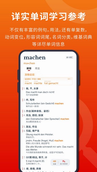 扎雅德语词典是一款非常好用的手机德语学习软件,特别适合需要学习德语或者正在备考德语考试的朋友。这款软件最大的特点就是内容非常专业,所有的单词和语法都是经过专业人士审核过的,而且解释得很详细,比如动词变位、形容词变化这些复杂的知识点都有清晰的说明。