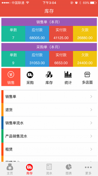 4、统计功能:收支数据、热销产品、滞销提醒、周期统计,一目了然