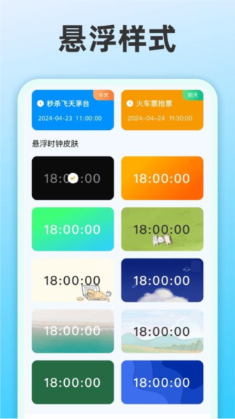 整点报时app是一款集悬浮时钟、闹钟、日程管理等多种服务于一体的多功能软件。它不仅提供个性化的悬浮时钟样式,让用户在手机桌面上呈现独特的时钟效果,还支持添加多个闹钟和日程计划,帮助用户高效管理时间和任务。无论是日常学习、工作还是处理生活琐事,整点报时都能为用户提供便捷的服务,软件给用户带来了极大的便利。