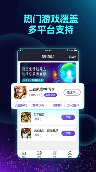 千款游戏完美加速:lol手游、王者荣耀、绝地求生:刺激战场、钢铁力量、传说对决、穿越火线、战争机器人、QQ 飞车、英雄联盟手游、等热门游戏应有尽有。新发游戏联系客服即可快速添加开启畅玩。