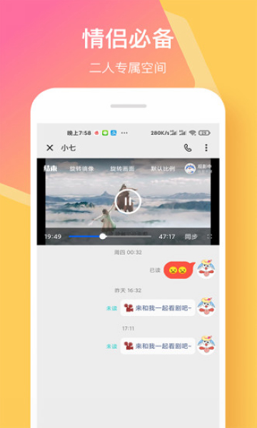 3、看电影:异地的时候,也可以和TA同步看电影;