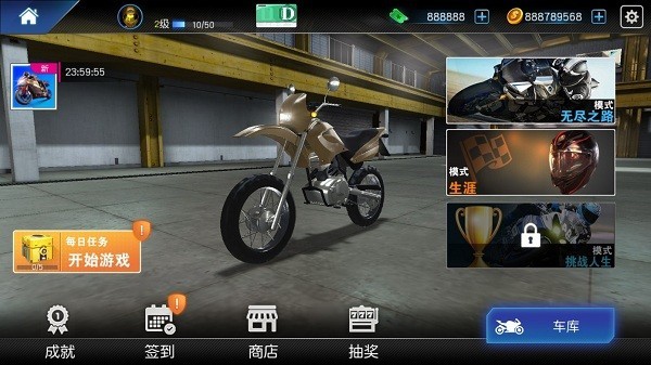 2.在这里玩家可以自由的展示自己的车技,通过高难度的操作可以获得高性能的新车。