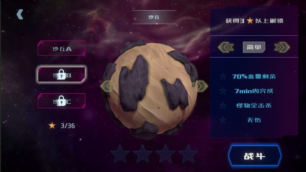 2、丰富的星球可以选择来进行探索,每个星球都有不同的战斗关卡等你来挑战。