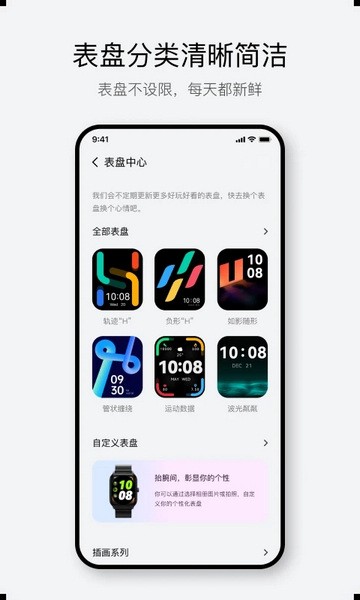 【丰富表盘】海量的表盘可供选择,跟随自己的心情选择喜欢的表盘同步至手表,并可以将喜欢的图片设置为自己的表盘。