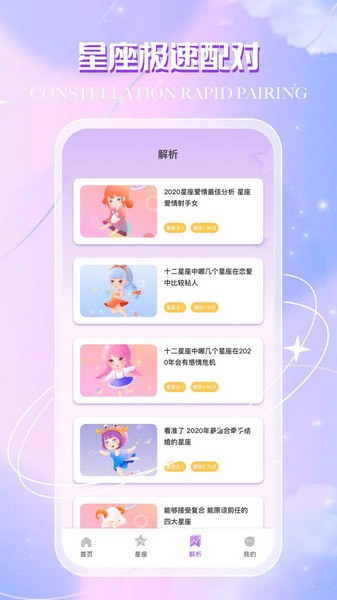 星图星座软件是一款能提供大量关于星座运势与配对服务的软件,大家只需要输入自己的生日就能够了解近期的运势情况,囊括了健康、学习工作、财运以及情感等多个方面,非常全面。软件使用方便又简单,清爽简洁的页面设计让使用体验也变得更加方便,大家还可以了解到不同星座之间的配对情况与个性分析,更好的满足大家平时休闲娱乐的需求。