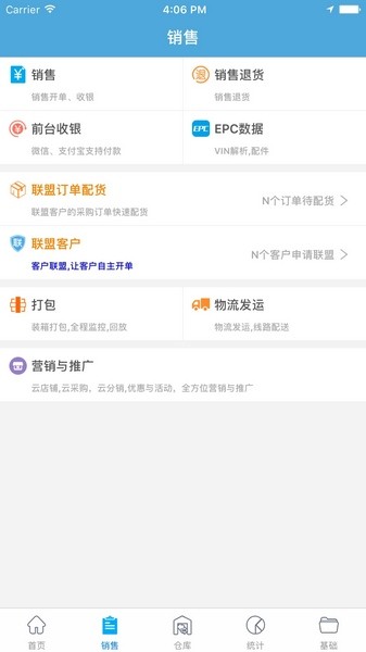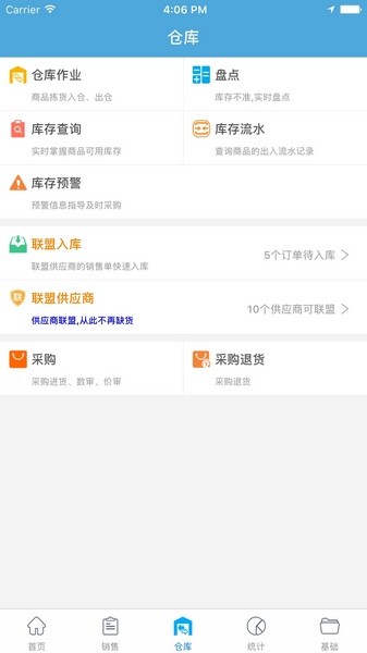 2、联盟合作强化:快速向联盟伙伴下单,实现一键入库,简化流程。