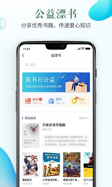 3、公益漂书,分享优秀书籍,传递爱心知识