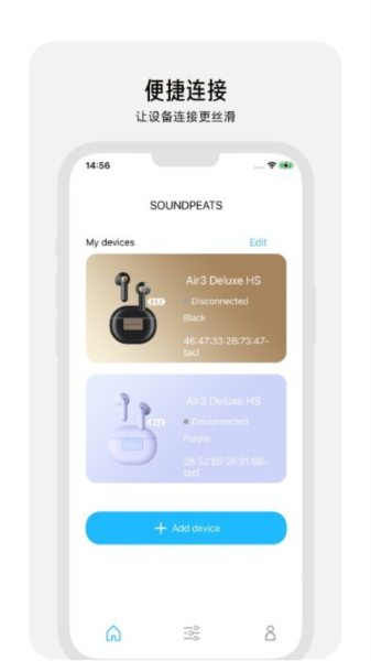 无缝连接,操控自如: 一键快速连接SOUNDPEATS蓝牙耳机,无论是启动还是切换,都如丝般顺滑,让便捷体验始终相随。