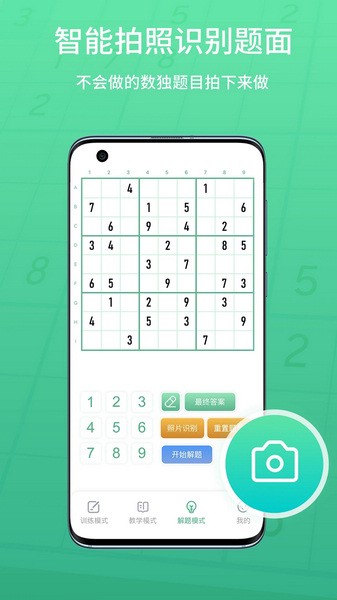 3、智能拍照识别:通过智能拍照识别题面,大大提高了解题效率,是数独爱好者的得力助手。