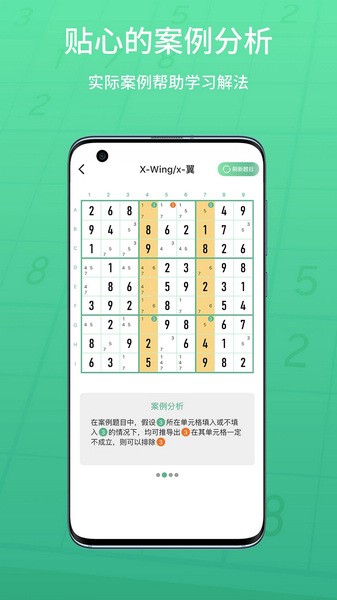 1、贴心案例分析:数独家app不仅提供解法练习,还通过贴心的案例分析,帮助你深入理解每个解法的实际应用。