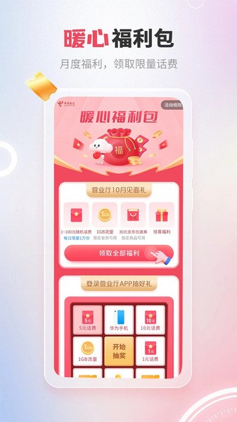 【重磅活动来袭】1分钱享15GB流量+大牌会员权益(腾讯、爱奇艺、芒果、优酷、网易云、喜马拉雅等);连续签到、查询打卡可兑换话费;使用金豆、积分兑换话费等多种好礼;年终多项回馈活动火爆开启等你来撩!