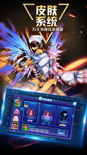 《数码大冒险》的Q萌版日系美术风格深得大众欢迎。但其中最为特别的,甚至可以说是独特的还是游戏中难得的金属质感。数码兽进化是由Q萌向机械感的进化,游戏中数码兽的战斗形态就含有独特的金属质感,这为游戏的战斗效果增添了超炫视觉享受。