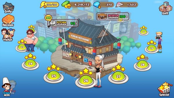 5、如果有更多的客人光顾的话,店面就能装修升级,在烹饪冒险中向着饮食大亨出发吧。