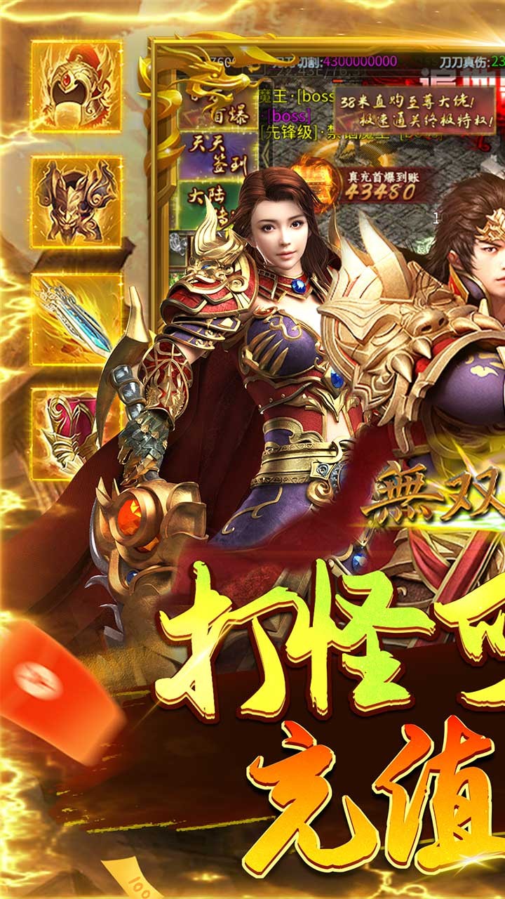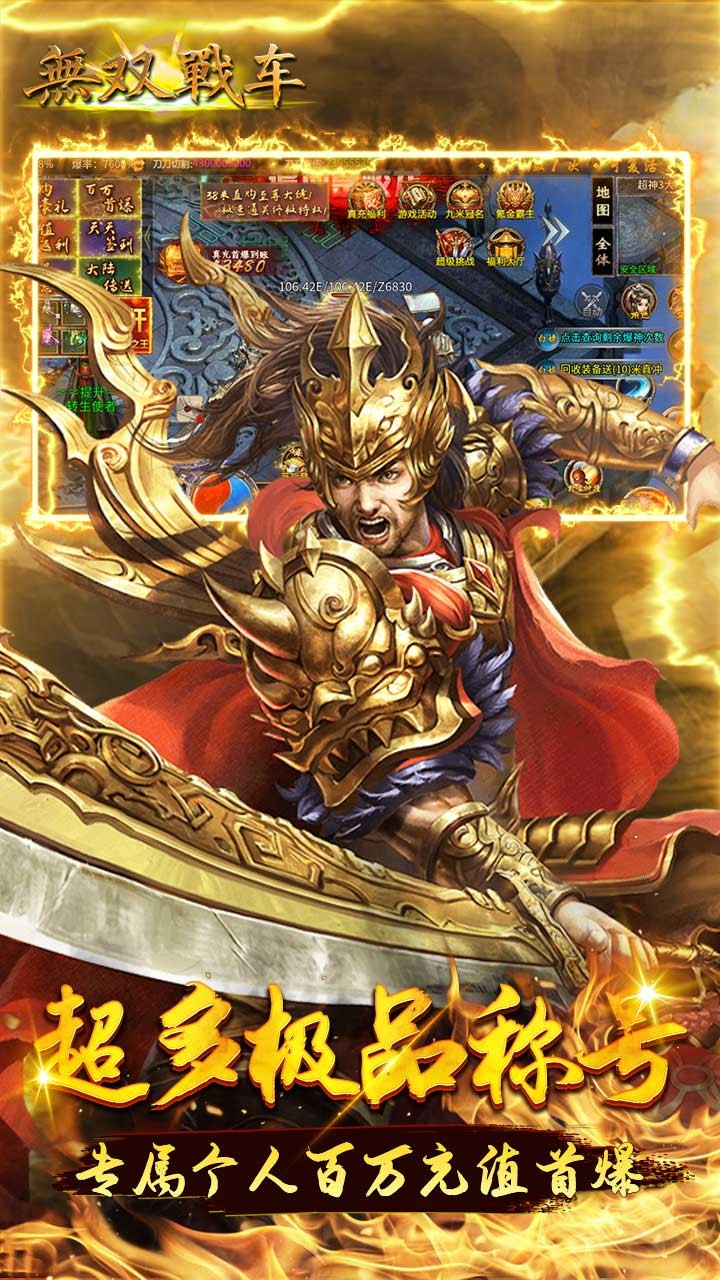 《无双战车BT版》是一款非常好玩的角色扮演手游,主打三职业复古传奇玩法,操作简单,内容丰富。游戏上线即送全屏拾取、自动回收、智能挂机等便利功能,新人玩家也能轻松起步。充值优惠力度大,0.1折起,高爆率玩法让装备和货币获取容易。
